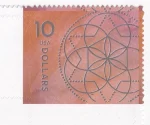 The designs feature a series of overlapping geometric shapes circles, ovals and triangles that reflect the symmetry of floral patterns. As the stamp denominations rise from $2 to $5 to $10, the designs become more complex.