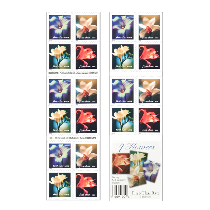 First Class Stamps 2000 Four Flowers – Nature Series, Fixed Rate Postage