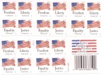 One of the most iconic and beloved USPS Forever Stamps issues. This quartet of Stamps features a bright U.S. flag against a white background. A single word appears on each of the four Stamps in large letters: Freedom, Liberty, Equality, and Justice. The black typeface recalls the look of Colonial-era printing.