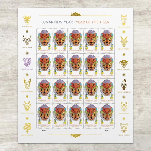 Forever Stamps 2022 Lunar New Year – Year of the Tiger, Holiday Celebration, First-Class Postage